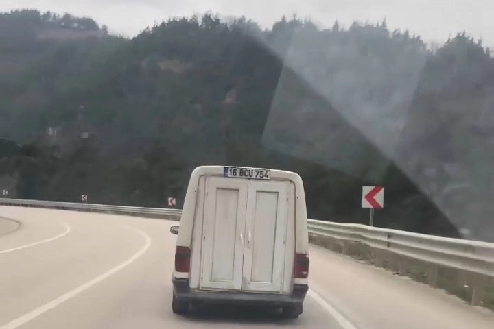 Bagaj kapağını plastik kapı ile kapatan şoför, görenleri hayrete düşürdü. 16 BCU 754 plakalı hafif ticari otomobilinin bagaj kapağı kırılınca, şoför de çareyi plastik kapı takarak buldu. Kendine özgü yaptığı stil ile Bursa caddelerinde gezen şoför, görenleri şaşırttı. O anlar vatandaş kamerasına yansıdı.