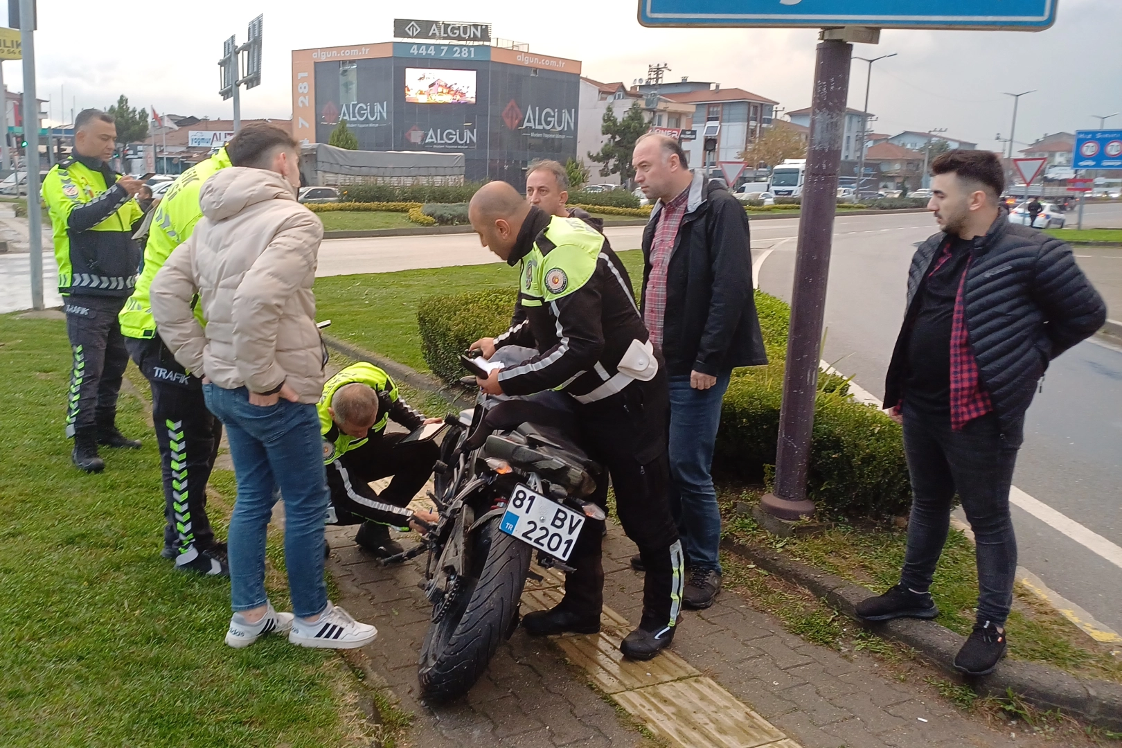 Düzce’de uygulama yapan ekiplerce durdurulan motosikletin sürücüsünün ehliyetsiz olduğu belirlenirken, plakası ise sahte çıktı. Düzce’nin Bahçeşehir bölgesinde uygulama yapan İl Emniyet Müdürlüğü Trafik Tescil ve Denetleme Şube Müdürlüğü ekipleri hız limitlerini aşan ve durmayan motosikleti D100 karayolu Çoban mevkisinde durdurdu. Ekipler, B.T.Ö. idaresindeki motosikletin orijinal plakasının 220 olduğunu ancak 2201 olarak değiştirildiği ve sürücünün de ehliyetsiz olduğunu belirledi. Polis ekipleri sahte plakayı sökerken, sürücüye sahte plaka takmak ve ehliyetsiz araç kullanmaktan 28 bin 492 TL ceza kesildi. Bağlanan motosiklet çekici ile otoparka çekildi.