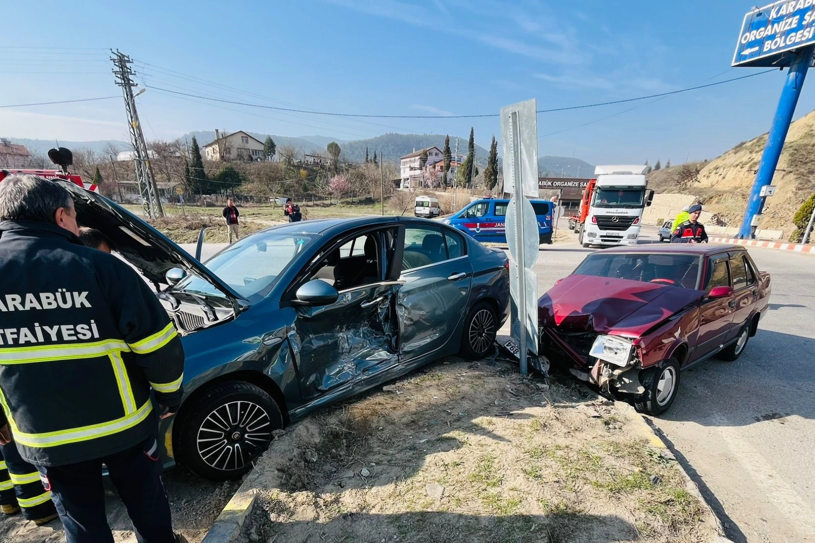 Karabük’te iki otomobilin çarpışması sonucu meydana gelen trafik kazasında 3 kişi yaralandı. Kaza Karabük-Eskipazar kara yolu Organize Sanayi Kavşağında meydana geldi. S.Y. sevk ve idaresindeki 78 BG 894 plakalı otomobil Eskipazar istikametine seyir halindeyken, kavşaktan dönüş yapmakta olan K.K. sevk ve idaresindeki 06 CVH 344 plakalı otomobille çarpıştı. Kazada K.K., M.C. ve S.Y. yaralandı. İhbar üzerine olay yerine polis, jandarma, itfaiye ve 112 Acil Servis ekipleri sevk edildi. Sağlık ekiplerinin ilk müdahalesinin ardından yaralılar Karabük Eğitim ve Araştırma Hastanesi'ne kaldırıldı. Tedavi altına alınan yaralıların sağlık durumlarının iyi olduğu öğrenildi.