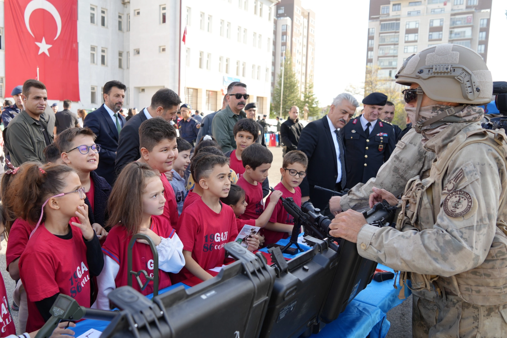 Kırıkkale'de jandarma personeli tarafından Cumhuriyet'in 100. yıl dönümü dolayısıyla öğrencilere yönelik düzenlenen etkinlikte, jandarmanın faaliyetleri ve ekipmanları hakkında bilgiler verildi. Asayiş köpeği "Tutar"ın yaptığı gösteri de öğrencilerin ilgisini çekti. Kırıkkale İl Jandarma Komutanlığı tarafından Cumhuriyet'in 100. yıl dönümü dolayısıyla öğrencilere yönelik etkinlik düzenlendi. Vali Mehmet Makas'ın da katılımıyla gerçekleştirilen etkinlikte öğrencilere, jandarma teşkilatı ve kullanılan ekipmanlar hakkında bilgi verildi. Makine Kimya Endüstrisi Kurumu tarafından üretilen yerli ve milli silahların da tanıtımı yapıldı. Etkinliğin devamında ise asayiş köpeği "Tutar" sergilediği gösteri öğrencilerin ilgisini çekti. Jandarma personeli daha sonra öğrencilerle birlikte halat çekme yarışı oynadı. Bazı öğrenciler de jandarma komandolar ve motosikletli jandarma personeli ile hatıra fotoğrafı çekindi. Sınıf Öğretmeni Seda Mengi, "Cumhuriyetimizin 100. yıl eşliğinde program çok şekilde devam ediyor. Çocuklarımız burada çok eğlenceli vakit geçiriyor. Gerekli gezi yerlerini de gördüler tanıdılar. Programı düzenleyen jandarmaya çok teşekkür ediyoruz" dedi. Etkinliğe katılan öğrencilerden Seda Ela Polat, eğlendiğini ifade ederek, jandarmanın yaptığı faaliyetle hakkında bilgi aldıklarını söyledi. Ömer Yiğit Özok, Cumhuriyetin 100 yaşında olduğu için çok mutlu olduğunu belirtti. Bera Irmak Demir ise asayiş köpeğinin yaptığı gösteriyi ilgiyle izlediğini söyledi.