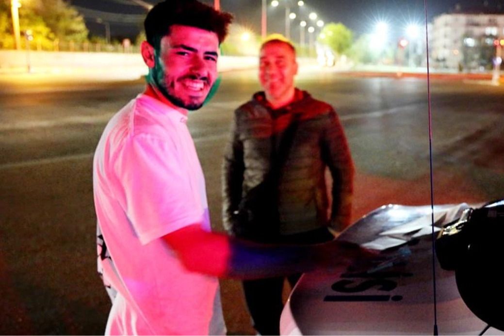 Bölgeye yakın olan Trafik Tescil ve Denetleme Şubesi ekibi kısa sürede aracı bularak durdurdu. Ehliyet ve ruhsat kontrolünden geçirilen T.Y.A. (25) isimli sürücü gazetecilerin kendisini görüntülediğini fark edince kameraya gülümsedi. Araçta inceleme yapan trafik polisleri araçtaki abartı egzozu tespit ederek sürücüyü ceza işlemleri için polis otosunun başına aldı.