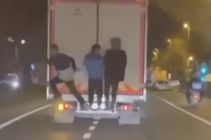 Olay, saat 01.00 sıralarında İstanbul Sancaktepe ilçesi, Sarıgazi Mahallesi’nde yaşandı. Edinilen bilgiye göre, dışarıda oyun oynayan bir grup çocuk caddeden geçen kamyonun arkasına tutunarak dakikalarca yolculuk yaptılar. Canını hiçe sayarak dakikalarca kamyonun arkasında ilerleyen çocuklar, bir süre sonra aracın arkasından atlayarak gözden kayboldu. Çevredeki vatandaşların gözü önünde yaşanan korku dolu anlarda başka bir sürücü tarafından amatör kamerayla görüntülendi. Görüntülerde, üç çocuğun kamyonetin arkasına tutunarak ilerlediği ve kamyonet seyir halindeyken atladığı görülüyor.