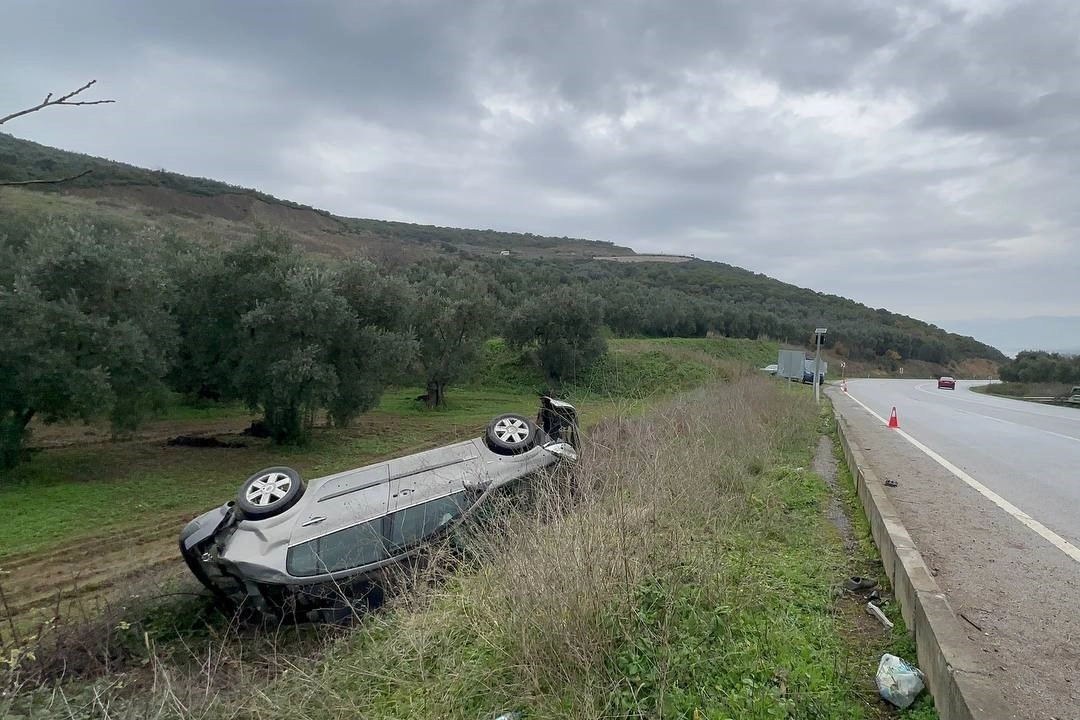 Kaza, arkadan gelen bir başka aracın kamerasına yansıdı. Otomobildeki 2 kişi, yaralı olarak hastaneye kaldırıldı. Kaza, Bursa'nın İznik ilçesinde meydana geldi. Edinilen bilgiye göre, Yenişehir ilçesinden İznik istikametine gitmekte olan 46 DH 989 plakalı otomobil sürücüsü, viraja geldiğinde hızını ayarlayamadı. Yağmur sebebiyle yerlerin de kayganlığıyla direksiyon hakimiyetini kaybeden sürücü, otomobiliyle birlikte tarlaya uçtu. Ters dönen araçtan şoför ve yanındaki kişi yaralı olarak kurtuldu. Kaza, anı otomobilin arkasında gelen başka bir araç kamerasına an be an yansıdı. Yaralılar İznik Devlet Hastanesine kaldırılırken, jandarma ekiplerinin ise kazayla ilgili tahkikatı sürüyor.