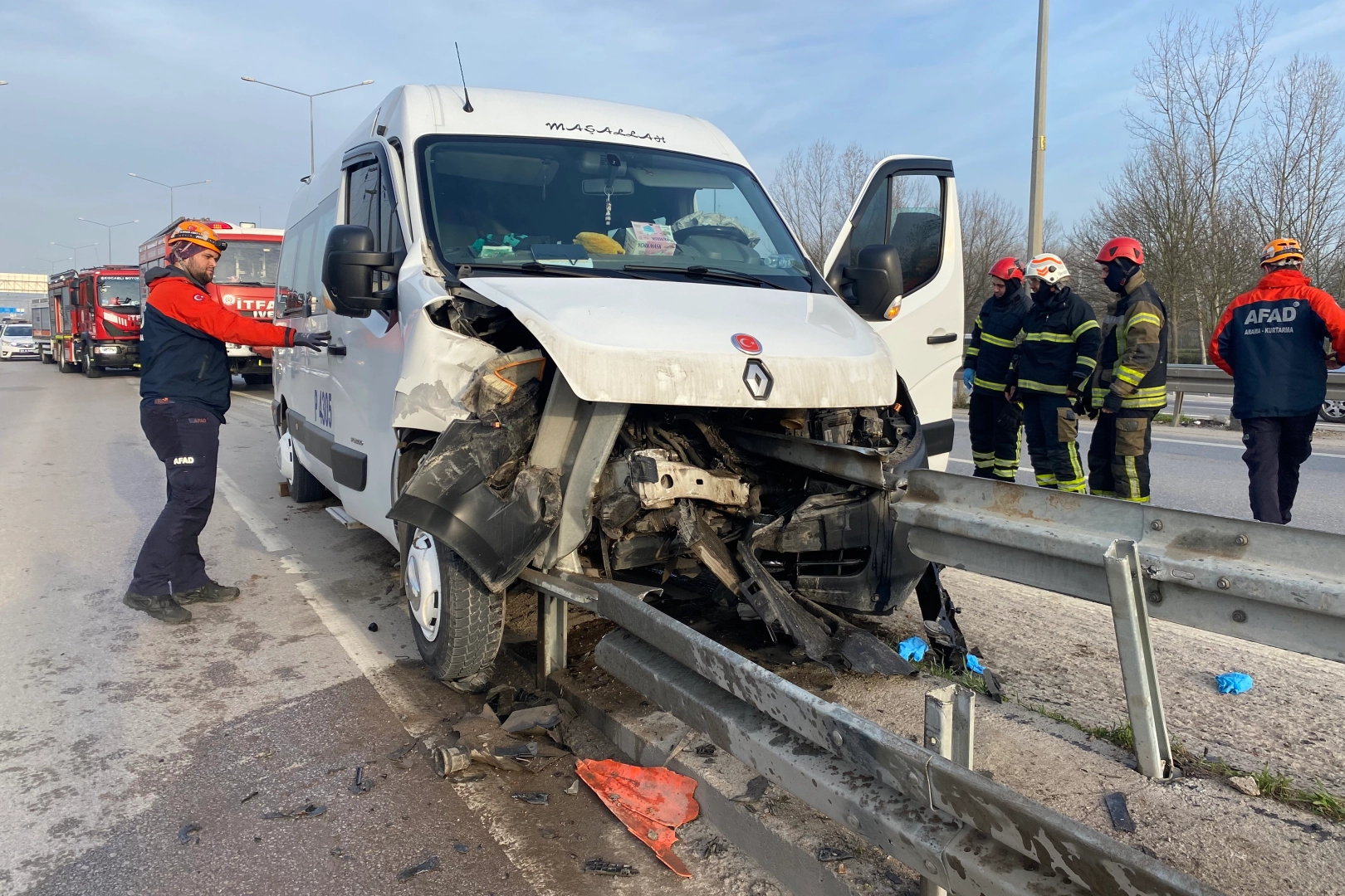 Kocaeli'nin Kartepe ilçesinde servis aracının bariyerlere çarpması neticesinde meydana gelen kazada bacağı kopan sürücü ağır yaralandı. Kaza, D-100 Ankara istikameti İstasyon Mahallesi mevkiinde meydana geldi. Edinilen bilgiye göre, M.C.T. idaresindeki 41 P 4305 plakalı boş servis aracı, yan yola gireceği esnada bariyerlere çarptı. Çarpmanın şiddetiyle bariyer araca ok gibi saplandı, bacağı kopan sürücü ağır yaralandı. Olayı gören vatandaşlar sürücü M.C.T.'yi araçtan çıkararak 112 Acil Çağrı Merkezine ihbarda bulundu. Yaralı M.C.T., sağlık ekiplerinin ilk müdahalesinin ardından hastaneye kaldırıldı. Öte yandan, polis ekipleri kaza yerinde inceleme yaptığı sırada meraklı vatandaşlar da o anları film gibi izledi. Kaza ile ilgili inceleme başlatıldı.