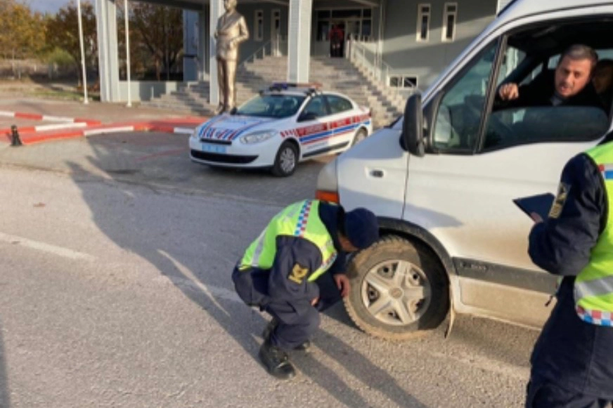 Kırklareli'de jandarma ekiplerince yapılan kış lastiği uygulamasında 136 sürücüye cezai işlem uygulandı. Kırklareli İl Jandarma Komutanlığı Trafik Jandarması tarafından, kış lastiği kullanım zorunluluğunun başlamasıyla birlikte soğuk hava şartlarında, karlı ve buzlu yollarda güvenli bir trafik ortamının sağlanması, uygunsuz lastik kullanımından kaynaklanan trafik kazalarının ve trafik kazası neticesinde ölüm ve yaralanmaların en aza indirilmesi amacıyla kış lastiği denetimleri yapılmaya başlandı. Yapılan denetimlerde 2 bin 910 ticari araç kontrol edilirken, 136 sürücüye cezai işlem uygulandı ve 45 araç trafikten men edildi. Denetimlerde 9 sürücünün belgesine geçici olarak el konulurken, denetimlerde aranması olan 1 şüpheli yakalandı.
