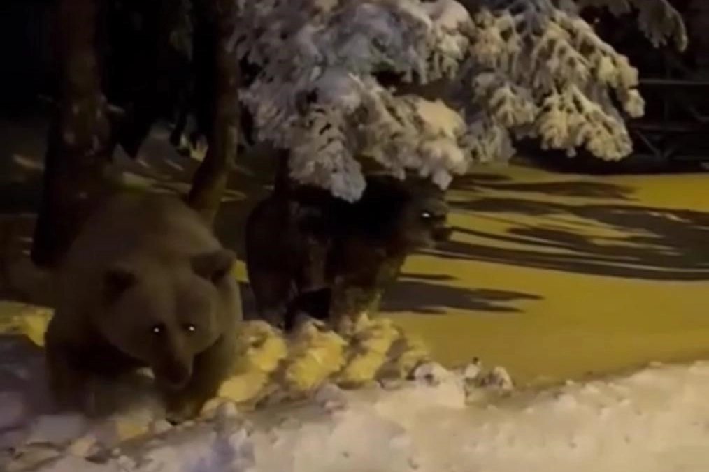 Türkiye’nin en büyük kış turizm merkezlerinden biri olan Uludağ’da kar yağışının başlamasıyla bazı vatandaşlar Uludağ’a koştu. Sarıalan’da yemek arayan ayıları gören bazı kişiler ise araçlarıyla durup ayıları izlemek istedi.