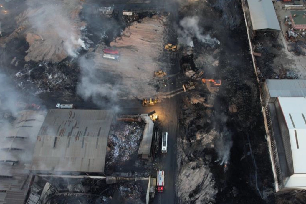 Günün ilk ışıkları yangının bilançosunu ortaya koydu İvedikköy Mahallesi, 3874'üncü Cadde'de bulunan geri dönüşüm firmasına ait açık alanda, dün saat 14.30 sıralarında, atık kağıt ve lastiklerin tutuşmasıyla başlayan yangın, rüzgarın etkisiyle kısa sürede büyüdü. Ekiplerin yangına müdahalesi havadan görüntülendi.