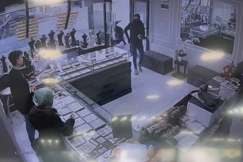 Kuyumcuda daha önceden gözüne kestirdiği Adana burması bileziklerin olduğu tarafa yönelen Emre V., 9 adet bileziği alarak tekrar motosikletine binip, hızla olay yerinden kaçtı. O anlar güvenlik kamerasına yansırken, polis Emre V.'nin yakalanması için güvenlik kameralarını inceledi.