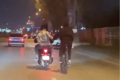 Olay, Sanayi Caddesi üzerinde meydana geldi. Edinilen bilgiye göre, trafikte seyreden motosiklet sürücüsü yolda gördüğü bisiklet sürücüsünün elinden tuttu. Beraber seyretmeye başlayan motosiklet ve bisiklet sürücüsünün tehlikeli yolculuğu amatör kameraya yansıdı.
