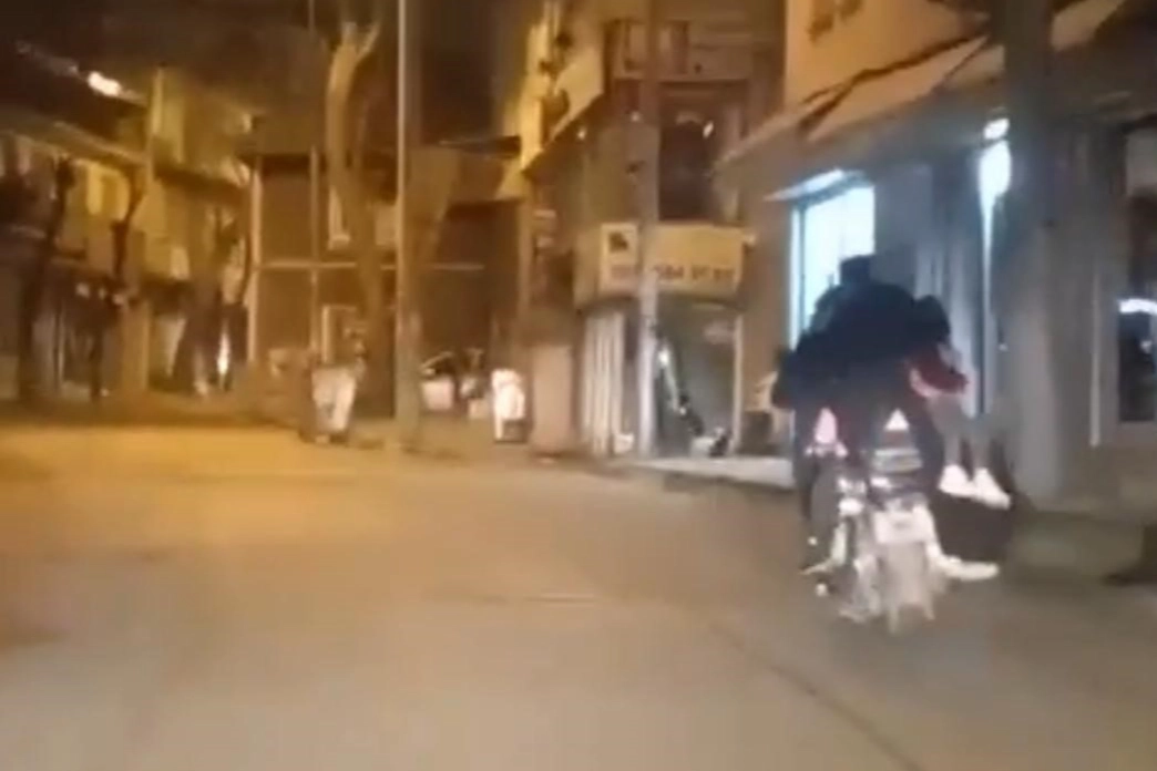 Tehlikli yolculuk kameraya yansırken, motosiklette bulunan küçük çocuklar dikkat çekti. Olay, merkez Osmangazi ilçesi Gülbahçe Mahallesi’nde meydana geldi. Cadde üzerinde seyir halindeki motosikletliyi görenler gözlerine inanamadı. Motosiklete bir değil, iki değil tam 4 kişinin bindiğini görenler, o anları anbean cep telefonu kameraları ile kayıt ederken, motosiklet arkasında bulunan kadının, bir eliyle küçük çocuğu, diğer eliyle motosikleti tutmaya çalıştığı dikkatlerden kaçmadı. Öte yandan, canlarını hiçe sayan aile, vatandaşların kornalı ikazına aldırış etmeden tehlikeli yolculuğunu sürdürdü.