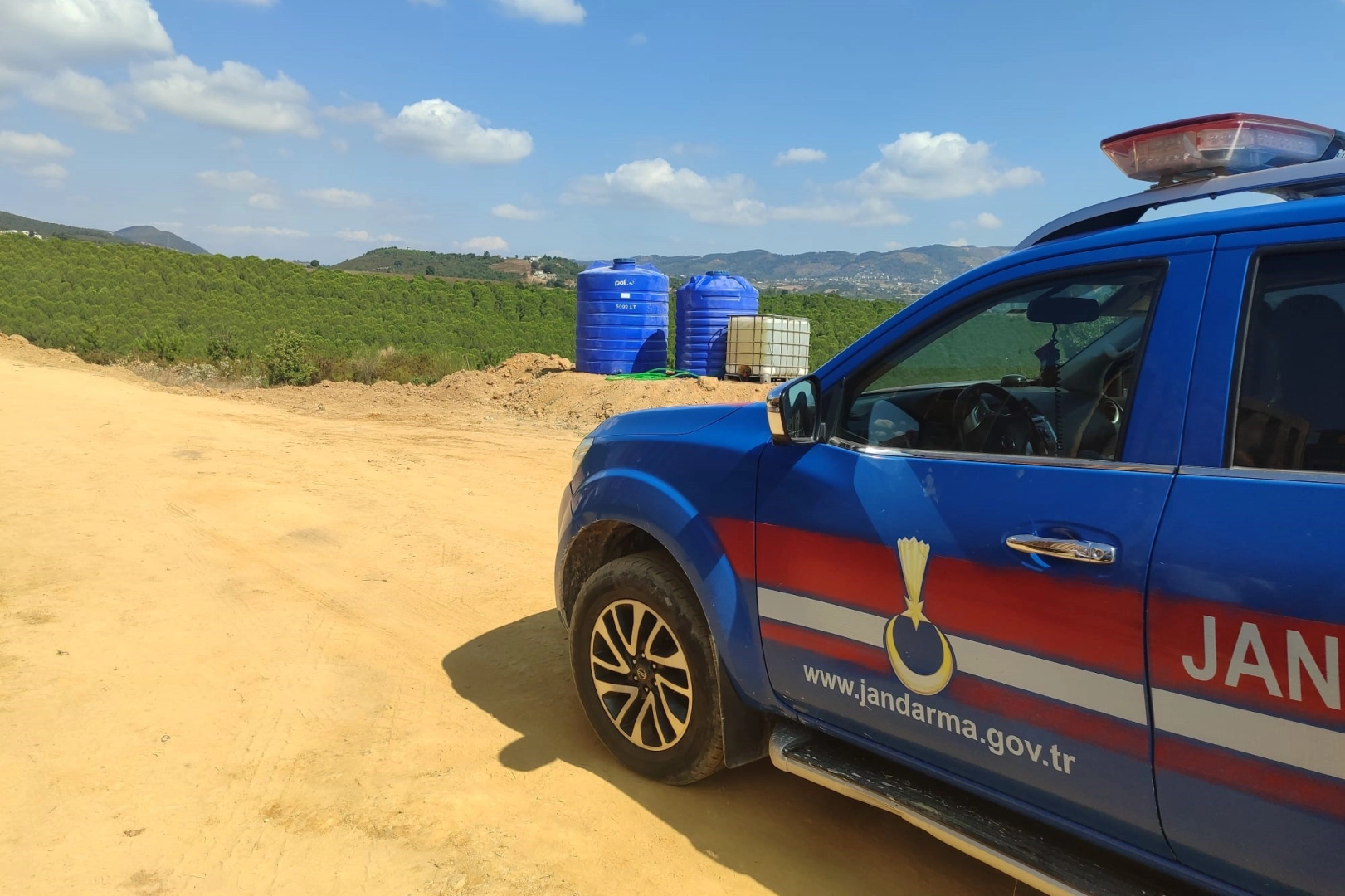 Jandarma ekipleri şantiye alanında bulunan 3 ayrı mazot tankından araziye doğru uzanan hortumları farketti.