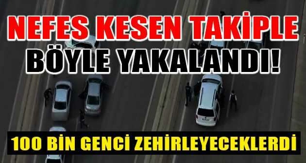 Bursa'da narkotik polisi son yılların en büyük operasyonuna imza attı. Nefes kesen takiple binlerce genci zehirleyecek 20 kilogram metamfetamin ele geçirildi. Fırtına isimli köpeğin de katıldığı operasyonda gözaltına alınan bir zanlı sevk edildiği mahkemece tutuklandı. Operasyon anı drone ile de havadan takip edildi.