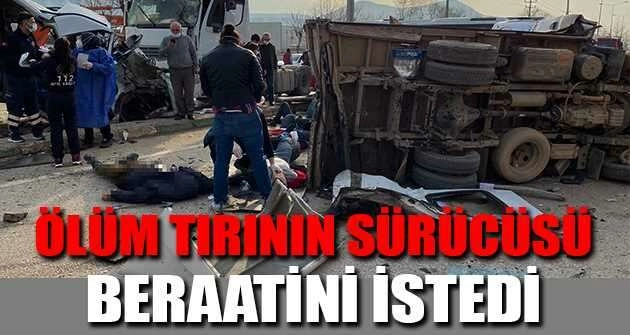 Bursa'nın Kestel ilçesinde 4 kişinin öldüğü, 22 kişinin yaralandığı trafik kazasına ilişkin açılan davada tutuklu yargılanan tır şoförü, "Kaza bilerek ve isteyerek olmadı. Tahliyeme ve beraatime karar verilmesini talep ediyorum" dedi.