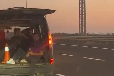 Canını hiçe sayarak bagajda yolculuk yapan kişi, ayaklarını araçtan sarkıtarak ne kendini, ne de çevredekilerin canını düşündü.