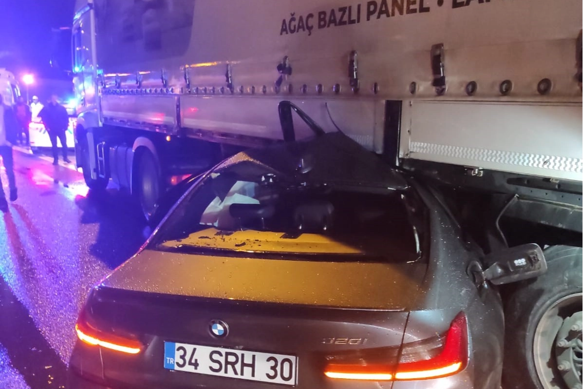 Edinilen bilgiye göre, Mahmut D. (22) idaresindeki 34 SRH 30 plakalı otomobil yağış nedeniyle kayganlaşan yolda sürücüsünün idaresinden çıkarak yine aynı istikamette seyir halindeki 10 ED 164 plakalı tırın dorsesine çarptı.