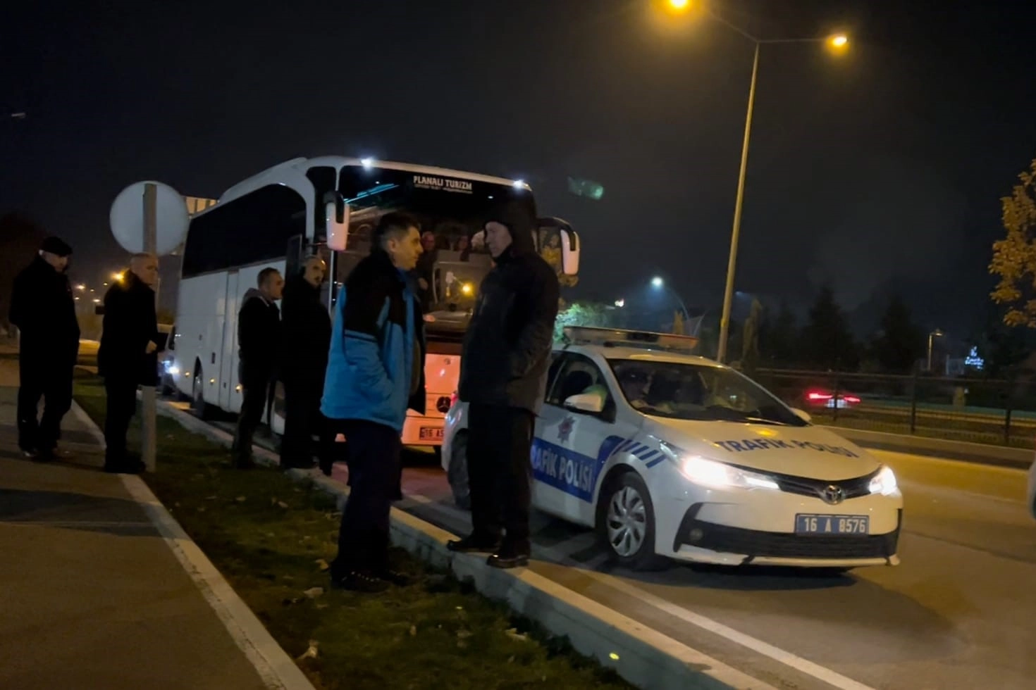 Sürücü Alper I. yönetimindeki 16 ASY 658 plakalı tur otobüsü, İnegöl Emniyet Müdürlüğü ekiplerinin dikkati üzerine ilçe girişinde durduruldu.