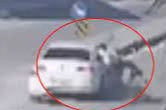 Kaza anı bir işyerinin güvenlik kamerasına saniye saniye yansırken, olay yerinden kaçan otomobilin sürücüsü 5 saat sonra yakalandı.