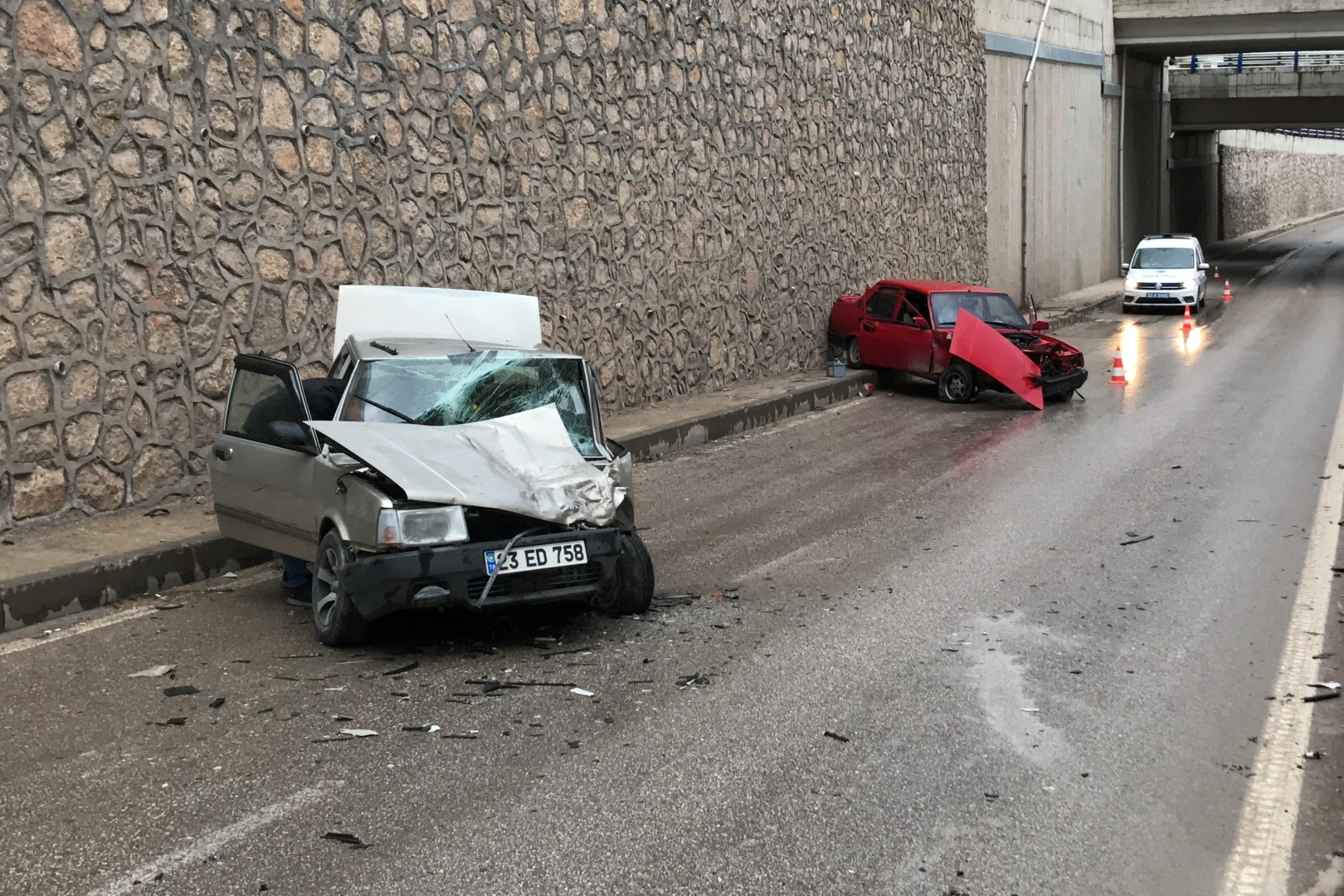 Elazığ’da iki otomobilin kafa kafaya çarpışması sonucu meydana gelen trafik kazasında 2’si ağır 4 kişi yaralandı. Kaza, merkez Ataşehir Mahallesi Orgeneral Eşref Bitlis Caddesi’nde meydana geldi. Edinilen bilgiye göre, H.Ç. idaresindeki 23 FA 750 plakalı otomobil, sürücüsünün direksiyon hakimiyetini kaybetmesi sonucu refüje çarptı. Hızını alamayarak karşı şeride geçen araç, M.G. idaresindeki 23 ED 758 plakalı otomobil ile kafa kafaya çarpıştı. Kazada, 2’si ağır 4 kişi yaralandı. Haber verilmesi üzerine olay yerine sağlık ve polis ekipleri sevk edildi. Yaralılar, ambulanslarla kentteki hastanelere kaldırılarak tedavi altına alındı. Polis ekipleri olay yerinde kazayla ilgili inceleme yaptı.
