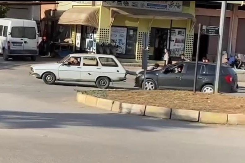 Remzi Oğuz Arık Bulvarı'nda otomobili bozulan sürücünün yardımına arkadaşı koştu. Ancak iki otomobilde de halat olmayınca pes dedirten görüntüler ortaya çıktı. Bir çocuk iki otomobilin arasına geçerek adeta halat görevi gördü. Çocuğun iki otomobilin arasında tutunduğu tehlikeli anlar anbean çevredeki vatandaşlar tarafından görüntülendi.