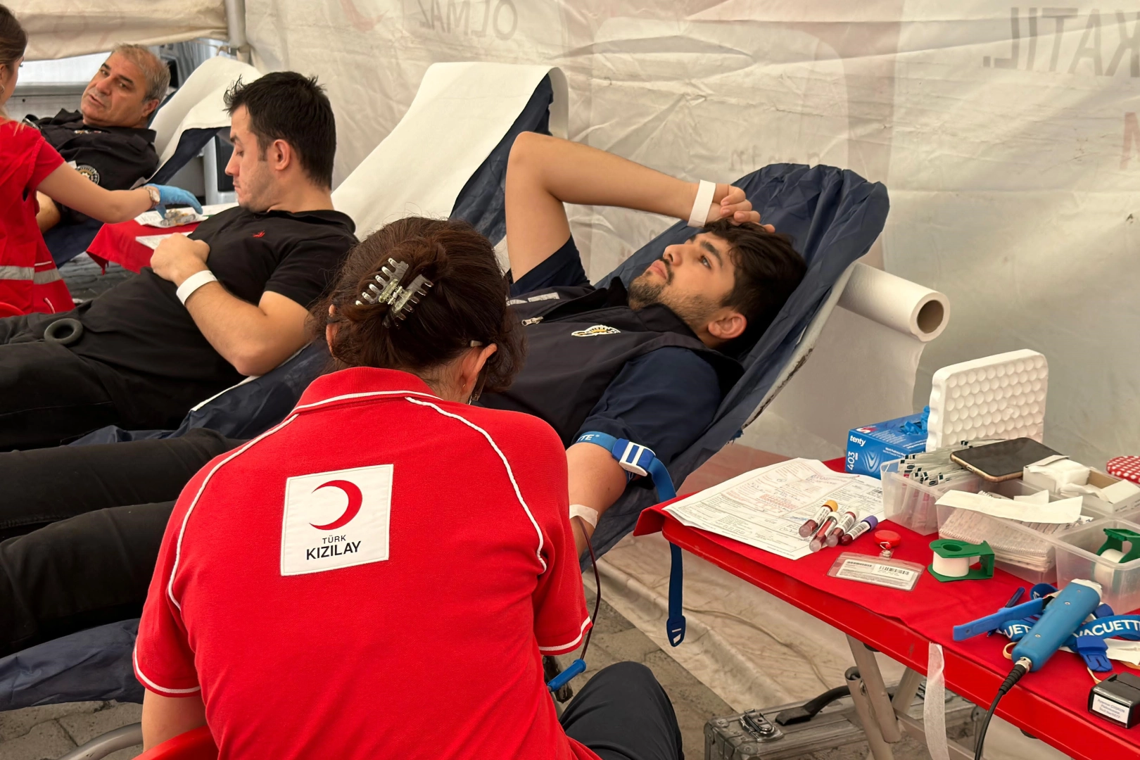Arnavutköy'de Cumhuriyet'in 100'üncü yılı nedeniyle ilçede görevli 100 polis memuru kan bağışında bulundu. Vatandaşlardan büyük beğeni ve ilgi gören organizasyonda kan bağış çadırı polis memurlarıyla, etrafı da polis araçlarıyla doldu. Örnek teşkil eden organizasyonda kan bağışının önemine dikkat çekmek hedeflendi. Arnavutköy'de düzenlenen Cumhuriyet'in 100'üncü yılı kutlamalarında güvenlik ve asayişten sorumlu 100 polis memuru programın sonlanmasının ardından Arnavutköy Merkez Camii önüne kurulan kan çadırına giderek kan bağışında bulundu. Polis memurları çadırın içini doldururken, polis araçları da kan bağış çadırının etrafını doldurdu. Çevredeki vatandaşların da ilgisini çeken organizasyonda kan bağışının önemine dikkat çekilmek istendi. Tören kıyafetleri ile kan bağışında bulunan polis memurları takdirleri de topladı. “Kan sürekli ihtiyaç olan bir şey” Kan bağışı yapmak için çadıra gelen Abdurrezak Yeşilyaprak, “Kan sürekli ihtiyaç olan bir şey benim kanım da zor bulunan kanlar arasında olduğu için ben sürekli kan vermeye gelirim. Kan stoklarının azaldığını biliyoruz biz de kan bağışında bulunmak için buraya geldik. İhtiyaç anında değil de her zaman kan verilmesi gerektiğini düşünüyorum. Herkesi kan bağışına davet ediyorum bu sağlık açısından da çok iyi bir şey. Polis memurlarını da burada gördük çok sevindik, güzel bir organizasyon olmuş” İfadelerini kullandı.
