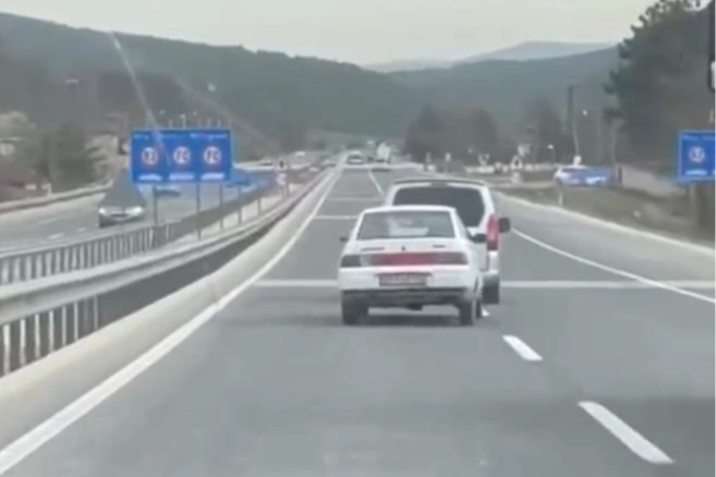 Olay, merkez Osmangazi ilçesi Bursa-Yalova Yolu üzerinde meydana geldi. Edinilen bilgiye göre, arıza yapan otomobili şehirlerarası yolda hafif ticari araç tehlike saçarak çekti. Zaman zaman süratli şekilde giden sürücü, yürekleri ağza getirdi. O anlar trafikteki başka bir sürücünün kamerasına yansıdı.