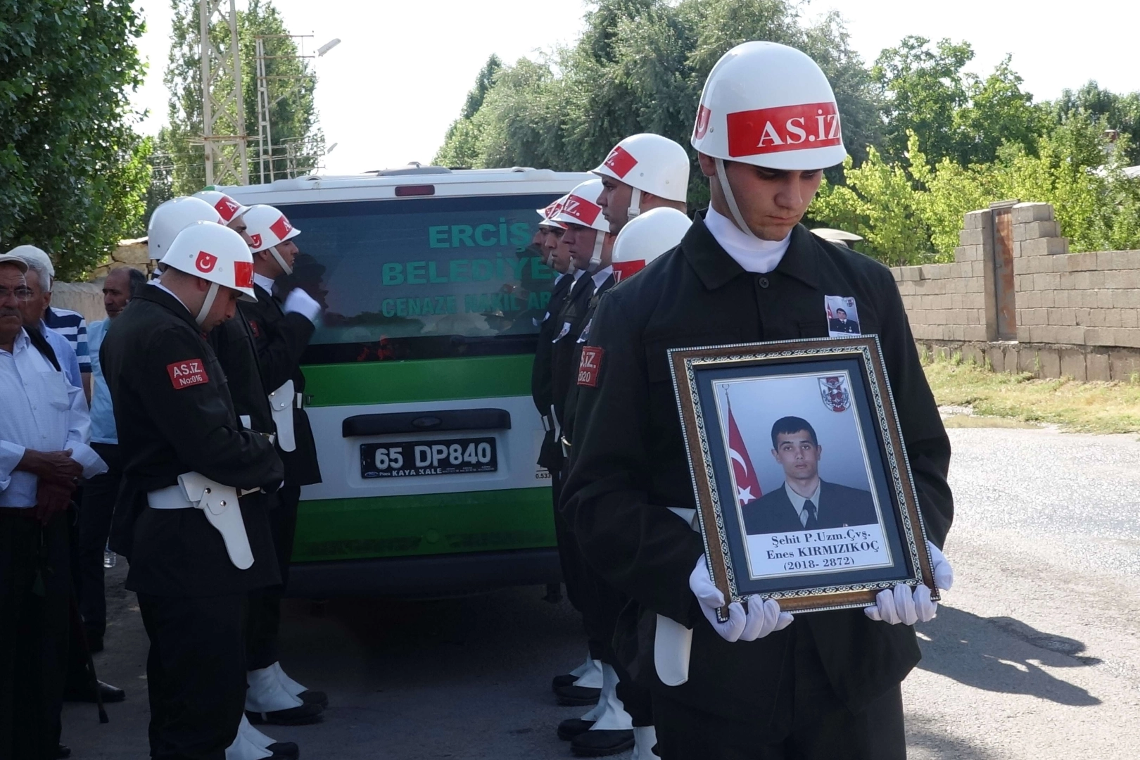 Şehit Kırmızıkoç'un (26) Türk bayrağına sarılı naaşı, askerler tarafından Erciş Şehit Rıdvan Çelik Devlet Hastanesi morgundan alınarak ilçeye bağlı Örene Mahallesi'ndeki baba evine götürüldü. Ailesinden helallik alındıktan sonra şehidin cenazesi, mahalledeki Suffe Camisi bahçesine getirildi. Burada kılınan cenaze namazının ardından şehit Piyade Uzman Çavuş Enes Kırmızıkoç, mahalle mezarlığında gözyaşları arasında son yolculuğuna uğurlandı. Törene, Vali ve Büyükşehir Belediye Başkan Vekili Ozan Balcı, Jandarma Asayiş Kolordu Komutanı Tümgeneral Aykut Tanrıverdi, 6. Hudut Tugay Komutanı Tuğgeneral Yüksel Kolcu, İl Jandarma Komutanı Tuğgeneral Hüseyin Bekmez, İl Emniyet Müdürü Atanur Aydın, Erciş Kaymakamı ve Belediye Başkan Vekili Nuri Mehmetbeyoğlu, siyasi parti temsilcileri, kurum amirleri ve çok sayıda vatandaşlar katıldı.