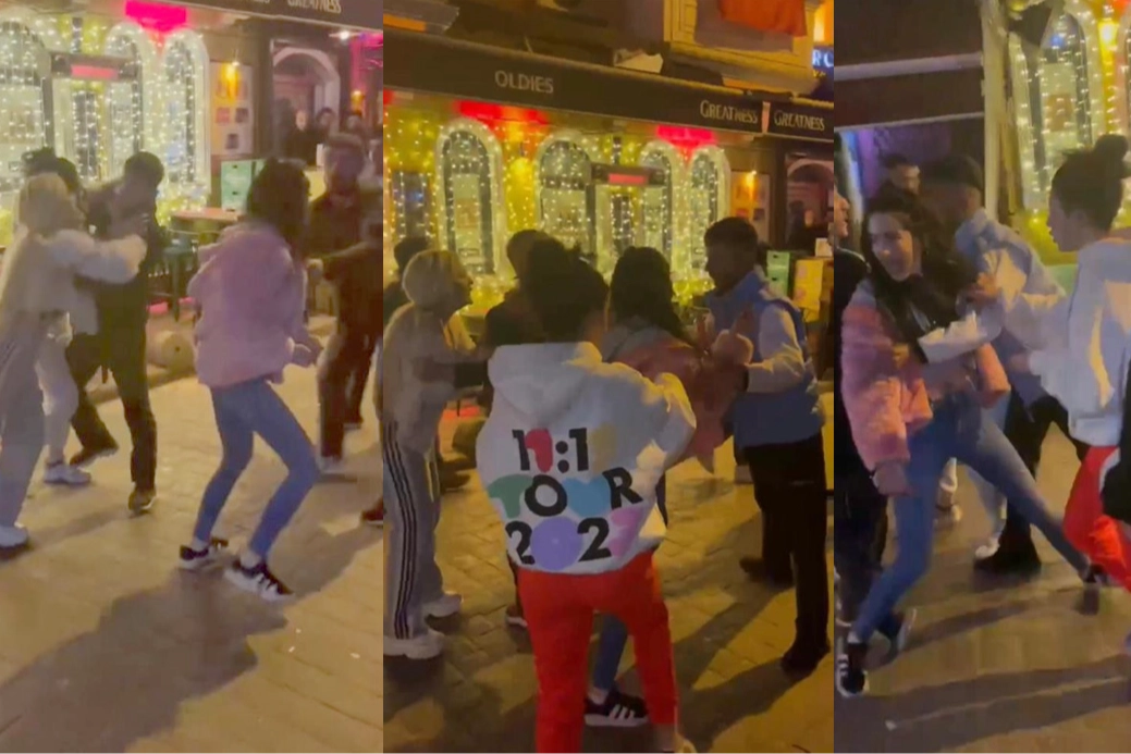 Beyoğlu Taksim semti Şehit Muhtar Mahallesi’nde önceki gün saat 03.00 sıralarında meydana gelen olayda iddiaya göre, genç bir kadın erkek arkadaşını başka bir kadınla sokak ortasında gördü. Bunun üzerine sinir krizi geçiren kadın, bir anda sevgilisinin yanındaki kadına, “Gel buraya gel. Beni bırakır mısınız?” diyerek tekme ve yumruklarla saldırmaya başladı.