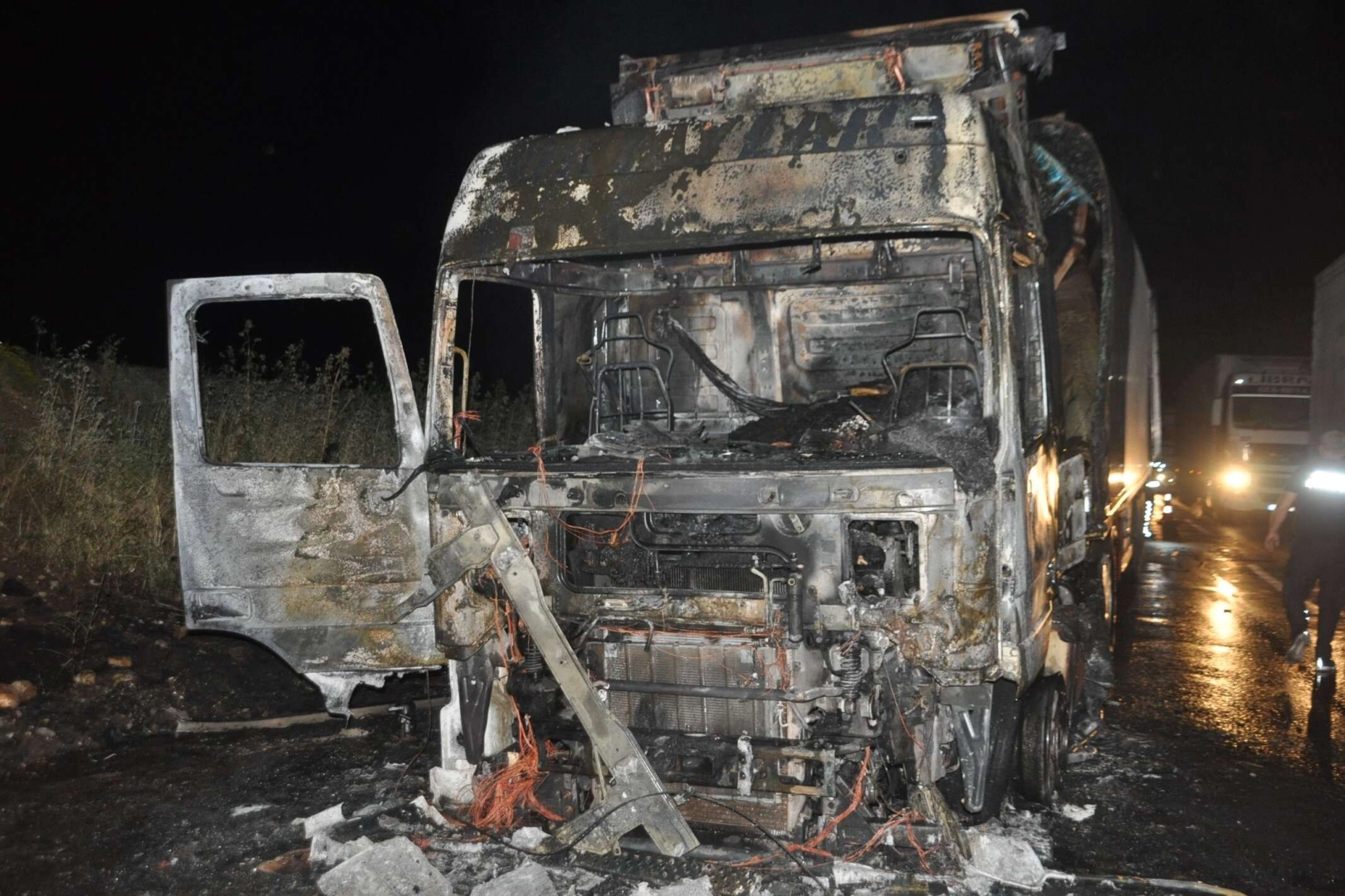 Cizre ilçesinde seyir halindeki tırda elektrik aksamından kaynaklı yangın çıktı. İhbar üzerine gelen itfaiye ekiplerinin müdahalesiyle yangın söndürülürken, tır kullanılamaz hale geldi. Olay gece saat 02.30 sıralarında Cizre-Silopi Uluslararası Karayolu üzerinde bulunan Yakacık köyü mevkiinde meydana geldi. Silopi istikametinden Cizre’ye gelmekte olan ve sürücüsünün ismi belirlenemeyen 27 L 3866 plakalı tır Yakacık köyü mevkiinde motor kısmından dumanlar yükselmeye başladı. Dumanları fark eden sürücü aracı emniyet şeridine park ederek, durumu itfaiye ekiplerine bildirdi. Motor kısmı yanan tır, kısa sürede alev topuna döndü. Olay yerine gelen itfaiye ekiplerinin müdahalesiyle yangın söndürülürken, tır kullanılamaz hale geldi. Polis ve jandarma ekipleri muhtemel bir kazaya karşı yoğun güvenlik önlemi alırken, yangın ile ilgili inceleme başlatıldı.