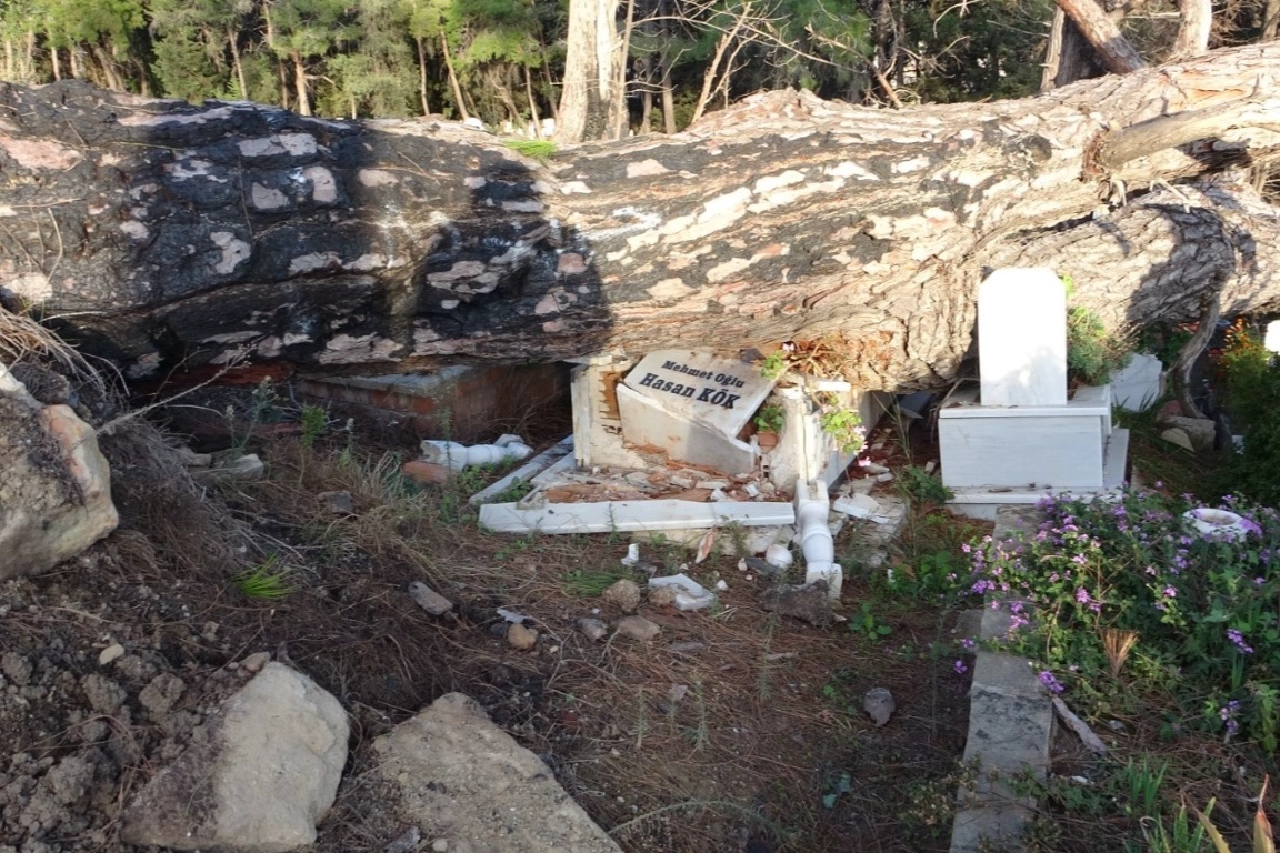 Şiddetli fırtınanın söktüğü ağaç mezarları tahrip etti