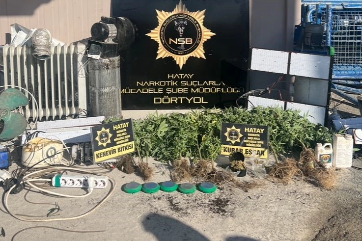 Hatay’ın Dörtyol ilçesinde bir evin bahçesinde ortaya çıkan ve içerisinde iklimlendirme sistemi bulunan sığınakta 14 kök Hint keneviri ele geçirildi. Yerin altındaki sığınağıysa polis ekiplerinin dikkati ve kapak ortaya çıkardı. Hatay Emniyet Müdürlüğü uyuşturucu imal ve ticaretine yönelik çalışmalarını aralıksız sürdürüyor. Polis ekipleri tarafından Dörtyol Sanayi Mahallesinde yaya olarak durdurulan E.Y.’nin üst ve ikamet aramasında, 100 gram skunk ele geçirildi. Ayrıca şahsın ikametinin bahçesinde yapılan aramada, yerin altına kapakla gizlenmiş tünel içerisinde Kenevir yetiştirmede kullanılan iklimlendirme sistemi düzeneği olduğu tespit edildi. Polis ekiplerinin dikkatiyle ortaya çıkan sığınakta yapılan aramada, boyları 50 cm ile 1500 cm arasında değişen 14 kök Hint keneviri ele geçirildi. Olayla ilgili olarak E.Y. yakalanarak gözaltına alındı.