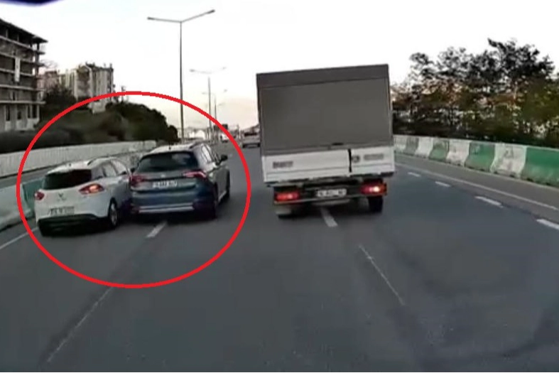 Arkadan gelen aracın son anda yaptığı manevra kazayı önlerken, o anlar kameraya anbean yansıdı.
