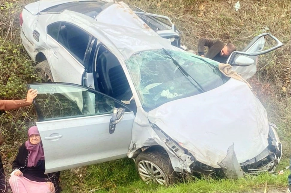 Çarpmanın etkisiyle savrulan araç şarampole yuvarlandı.