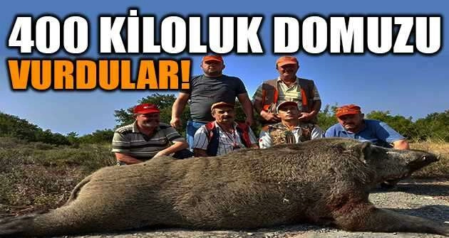 Bursa'da köylüler tarlarına ve meyve bahçelerine zarar veren 400 kiloluk domuzu avladı.