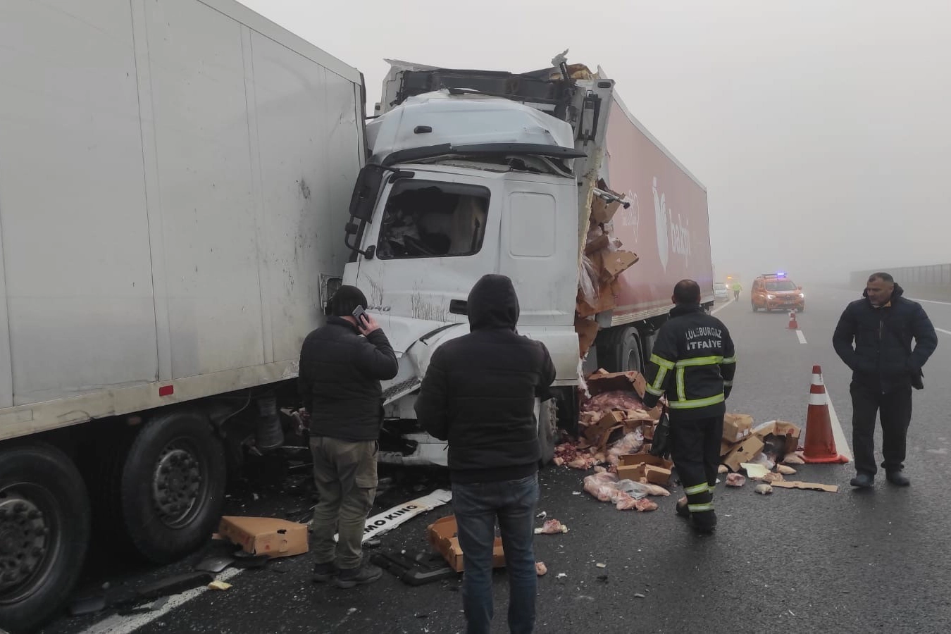 Kırklareli’nde tırların çarpışması sonucu 2 kişi yaralandı. Alınan bilgiye göre, Lüleburgaz ilçesi akalı tır TEM otoyolunun Hamitabat mevkisinde 06 DSA 532 plakalı Ş.K. idaresindeki tır emniyet şeridinde duran KA 5508 CT plakalı tıra çarptı. Haber verilmesi üzerine bölgeye sağlık, itfaiye ve polis ekipleri sevk edildi. Bölgeye gelem sağlık ekipleri kazada yaralanan sürücülere yaptığı ilk müdahalenin ardından hastaneye kaldırıldı. Öte yandan, kaza sebebiyle Lüleburgaz - İstanbul istikametine ulaşım bir süre tek şeritten sağlandı.