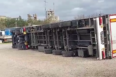 Uludağ'ın eteklerinde bulunan Erikli Su Fabrikası'nın bahçesinde devrilen Mercedes marka tırların yakınlarında kimsenin bulunmaması muhtemel bir faciayı önledi.