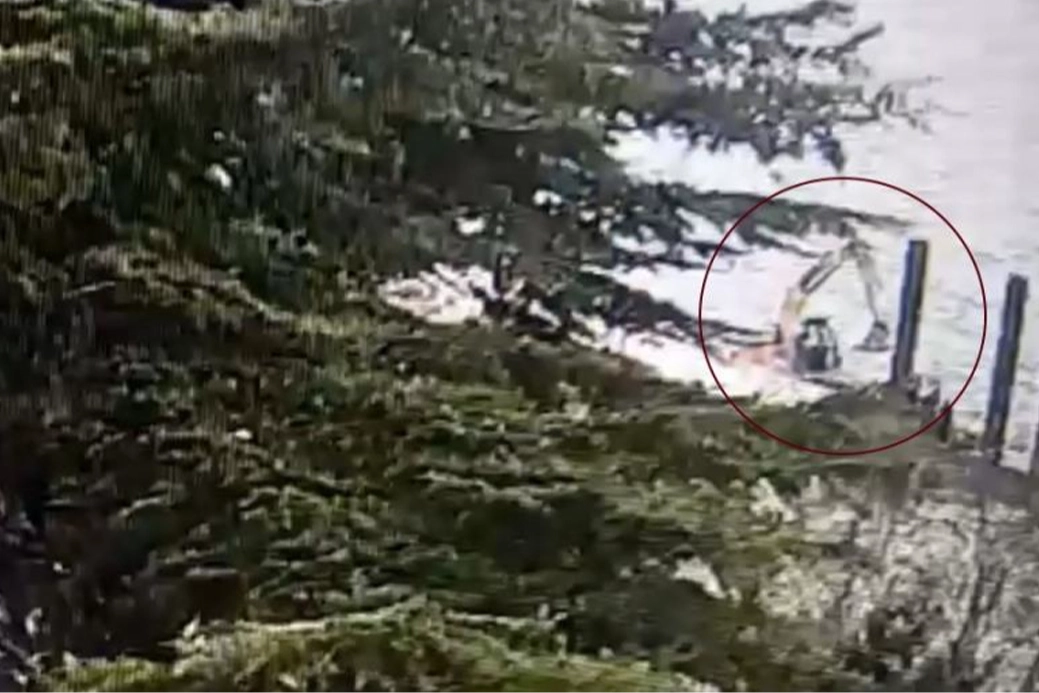 Görüntülerde, işçiler çalıştığı esnada onlarca tonluk kepçenin çıktığı iskelenin çöktüğü, iki işçinin denize düştüğü ve kepçenin ağzının suya daldırıp işçileri kurtarmaya çalıştığı görülüyor.