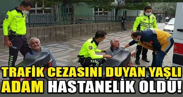 İlçe Emniyet Müdürlüğü trafik ekipleri, Kemalpaşa Mahallesi Adnan Menderes Bulvarı üzerinde sürücülere yönelik uygulama yaptılar. Uygulama sırasında plakasız motosiklet durduruldu. Yapılan incelemede, motosikletin "çekme belgeli" olduğu tespit edildi. Sürücü Cemalettin E'ye (53) bin 300 TL ceza kesildi. Ceza miktarını duyan sürücü, fenalık geçirdiğini söyleyerek yere oturdu. Tansiyonunun çıktığını, kendisini iyi hissetmediği söyleyen sürücüye, polis ekipleri yardım etti. Su ikram edilen sürücü, polis ekiplerinin yardımıyla 112 ambulansına alındı. Hastaneye sevk edilen sürücü, tedavinin ardından taburcu edildi. Motosiklet, çekici yardımıyla otoparka çekildi.