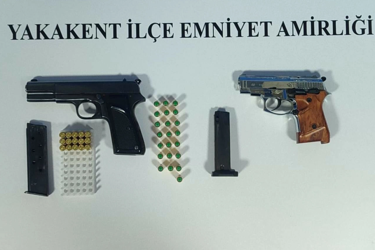 Samsun'un Yakakent ilçesinde polis tarafından yapılan narkotik-asayiş uygulamasında 2 adet silah ve mermi ele geçirildi. Edinilen bilgiye göre, Yakakent İlçe Emniyet Amirliği ekipleri, dün akşam 19.00-00.00 saatleri arasında narkotik-asayiş uygulaması düzenledi. 2 ekip 8 personel görevlendirildi uygulamada, 32 şahıs sorgulandı ve 5 araç kontrol edildi. Yapılan aramalarda, 1 adet ruhsatsız tabanca, 15 adet 9 mm fişek, 1 adet kurusıkı tabanca ve 22 adet kurusıkı tabanca fişeği ele geçirildi. Uygulamada 1 araç sürücüsüne 951 TL trafik cezası uygulandı.