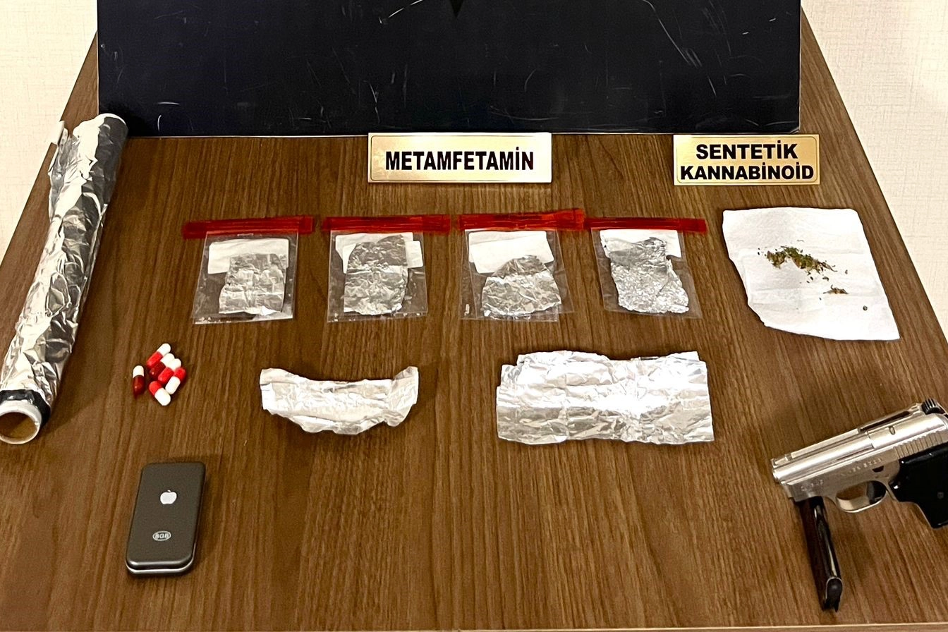 Samsun'da narkotik polisi tarafından düzenlenen uyuşturucu operasyonunda 24 kişi yakalandı. Samsun Cumhuriyet Başsavcılığı koordinesinde uyuşturucu ile mücadele çalışmalarını sürdüren Samsun Emniyet Müdürlüğü Narkotik Suçlarla Mücadele Şube Müdürlüğü ekipleri, ilçe emniyet ve şube müdürlüklerinin de desteğiyle yapılan uygulamada 36 gram skunk, 42 adet sentetik ecza, 5,71 gram metamfetamin, 2,20 gram esrar, 0,76 gram kokain, 0,50 sentetik kannabinoid, 2 adet esrarlı sigara, 1 adet hassas terazi, 2 adet uyuşturucu madde kullanımına yarar aparat, 2 adet ruhsatsız tabanca ve 5 ruhsatsız tabanca fişeği ele geçirdi. Uyuşturucu madde kullanmak suçundan 4 yıl 2 ay kesinleşmiş hapis cezası bulunan 1 kişi, ruhsatsız ateşli silahlarla mermiler satın alma suçundan 6 ay hapis cezası bulunan 1 kişi ve hırsızlık suçundan ifadeye yönelik aranması olan 1 şahıs ile birlikte toplam 24 kişi yakalandı.