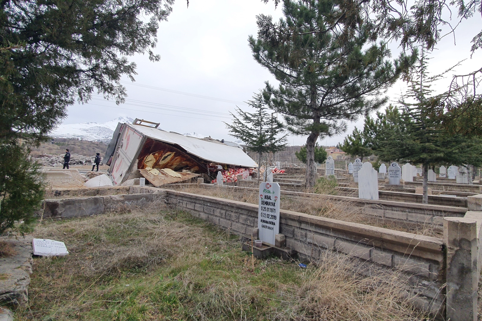Kayseri'nin Hacılar ilçesinde virajı alamayan tırın mezarlığa devrilmesi sonucu meydana gelen kazada sürücü yaralandı. Edinilen bilgiye göre, Aşağı Mahalle Erenler Caddesi üzerinde meydana gelen kazada, F.Ö. idaresindeki 07 ATZ 044 plakalı kuruyemiş yüklü tır, virajı alamayarak mezarlığa girip devrildi. Kazada tur şoförü yaralanırken, ihbar üzerine bölgeye polis, sağlık ve itfaiye ekipleri sevk edildi. Tırda çıkarılan şoför ambulansla Erciyes Üniversitesi Tıp Fakültesi acil servisine kaldırılarak tedavi altına alındı. Yolda güvenlik önlemi alan polis ekipleri de inceleme yaptı. Mezarlığın duvarı ve bazı mezarlarda zarar gördü. Kazayla ilgili soruşturma başlatıldı.