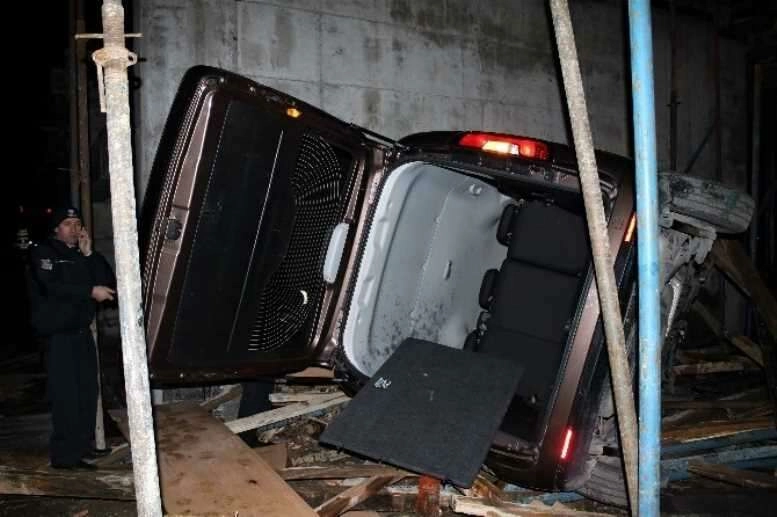 Yıldırım'da, polisin dur ihtarına uymayan alkollü sürücünün kullandığı araç okul inşaatına uçtu.