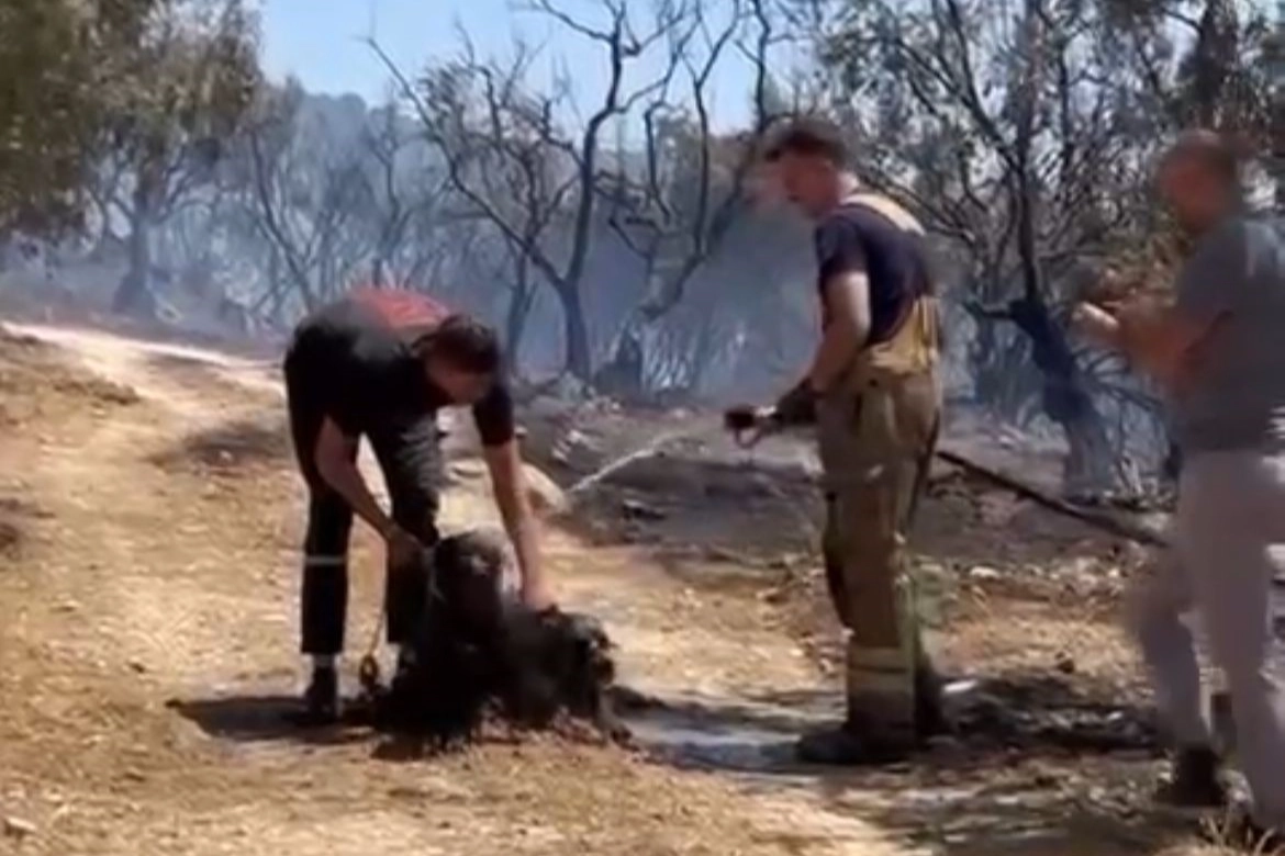 Köpeklere ilk müdahaleyi itfaiye ekipleri tarafından su ile yapıldı. Yürek ısıtan anlar, saniye saniye amatör kamera ile kaydedildi.