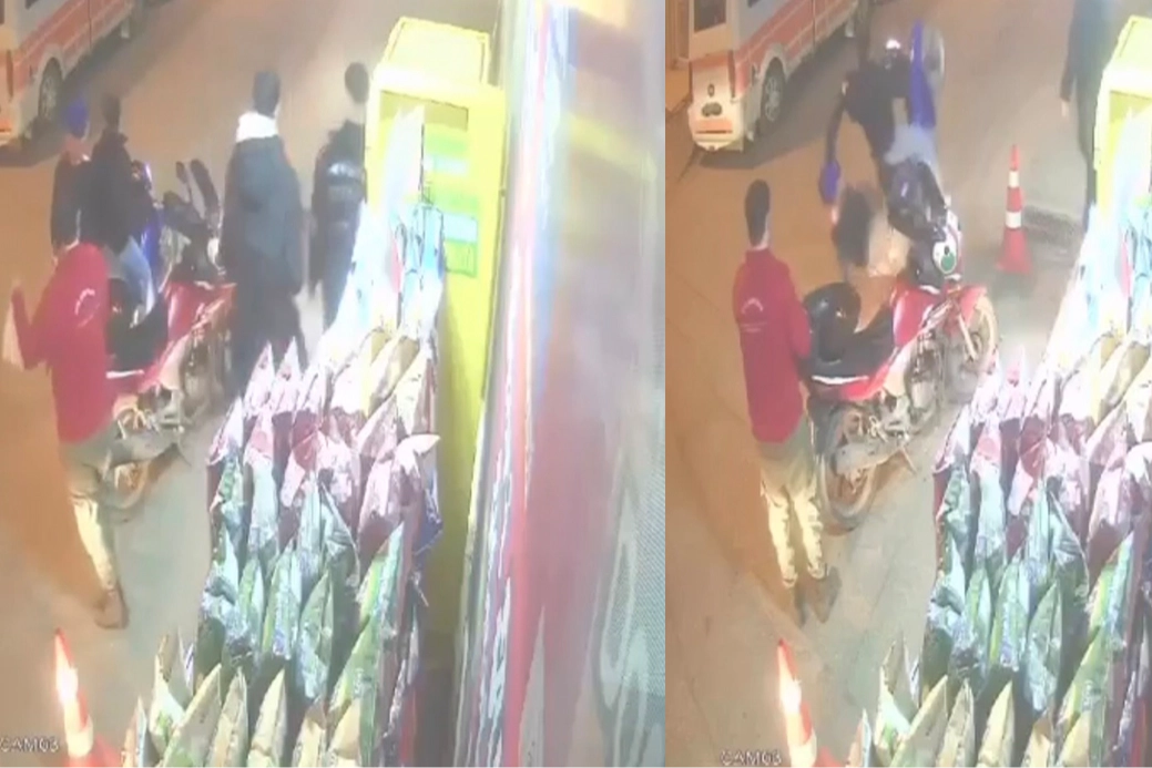 Olay, Kestel ilçesi Vani Mehmet Mahallesi’nde meydana geldi. Edinilİen bilgiye göre, yol üzerinde marketi gören motosiklet sürücüsü marketin önünde durdu. Arkadaşlarıyla sohbet eden sonra dalgın sürücü, bir anda gaza bastı. Gazın şiddetiyle motosiklette yolcu konumunda kişi yere düştü. O anlar güvenlik kamerası tarafından kaydedildi.