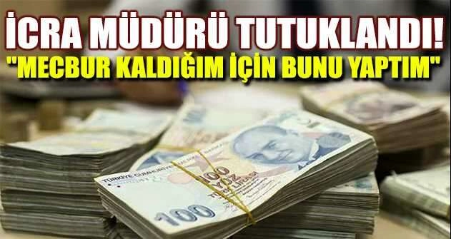 Edinilen bilgiye göre, İznik Asliye Hukuk Hakimliği tarafından yapılan inceleme sonrasında İznik İcra Dairesinde yaklaşık 3 yıldır müdür olarak görev yapan 37 yaşındaki Zübeyde Ateşçi'nin 210 bin lirayı usulsüz olarak başka hesaplara aktardığını tespit etti. Cuma günü gözaltına alınan İznik İcra Müdürü tutuklanarak cezaevine gönderildi. İcra müdürünün ifadesinde "mecbur kaldığım için bunu yaptım" dediği öğrenildi.