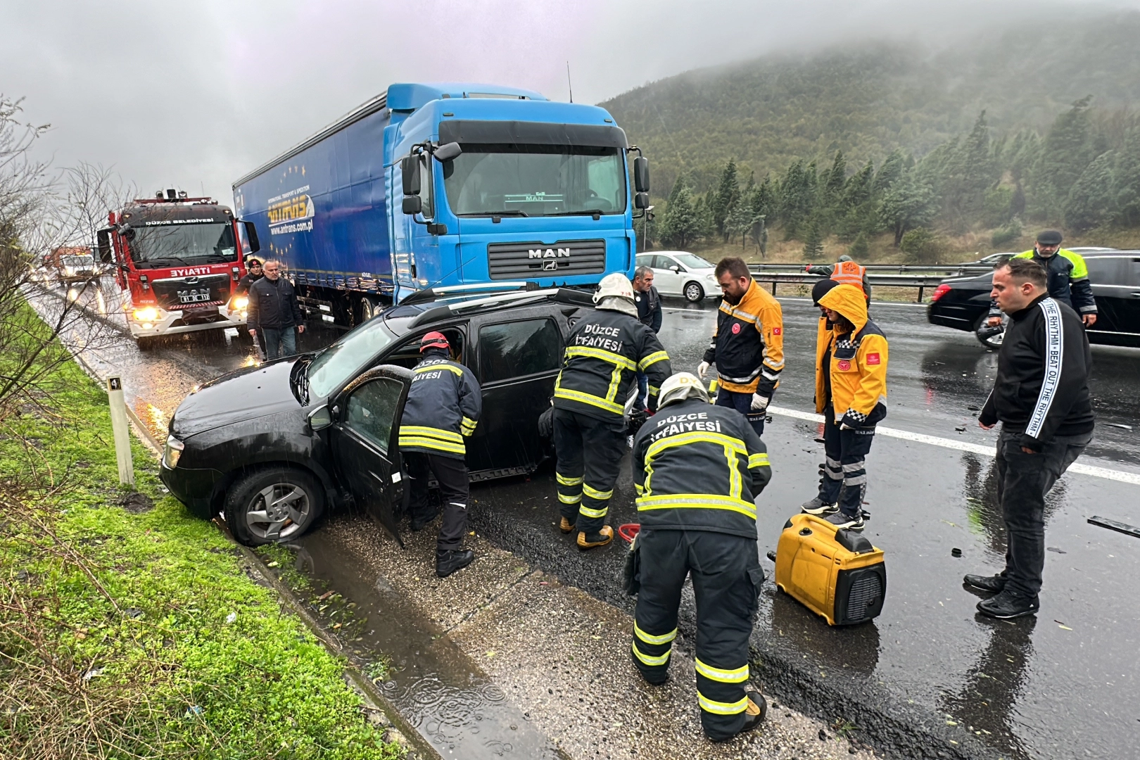 Kaza, TEM Otoyolu Gümüşova rampalar mevkiinde meydana geldi. Edinilen bilgiye göre, İstanbul’dan Ankara istikametine seyir halinde olan E.B. idaresindeki 34 CTV 508 plakalı Fiat marka otomobil, önce A.E. hakimiyetindeki 67 LM 941 plakalı otomobille, ardından da B.Ç.'nin kullandığı 50 ABD 501 plakalı Dacia marka ciple çarpıştı. Sağanak yağış sebebiyle kayganlaşan yolda yabancı uyruklu U.G.H.Y. idaresindeki BU 8928 HK plakalı MAN marka tır da kaza yapan araçlara çarparak durabildi. Kazada cipte bulunan Ü.G.T., E.T. ve A.T. aracın içinde sıkıştı. İhbar üzerine bölgeye sağlık, polis, jandarma ve itfaiye ekipleri sevk edildi. Sıkışan yolcular itfaiye ekipleri tarafından araçtan çıkarıldı. Yaralanan A.E., E.B., B.Ç., Ü.G.T., E.T., A.T. ve G.Ç., sağlık ekiplerinin ilk müdahalesinin ardından hastaneye kaldırıldı. Kaza ile ilgili inceleme başlatıldı.