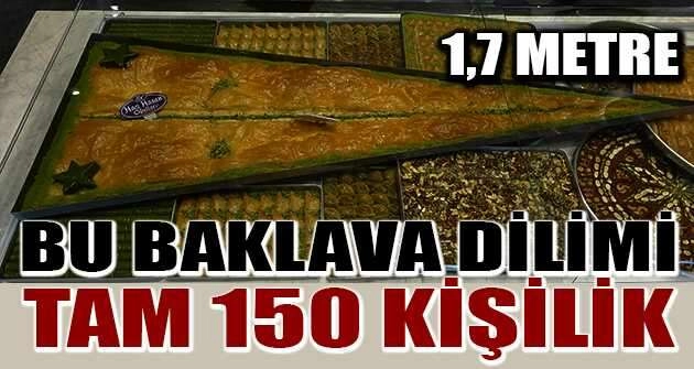 Bursa’da ünlü baklava ustasının 9.şubesinin açılışı için yaptığı 1,7 metre uzunluğundaki 15 kiloluk 150 kişilik havuç dilimi baklavayı görenler gözlerine inanamadı.