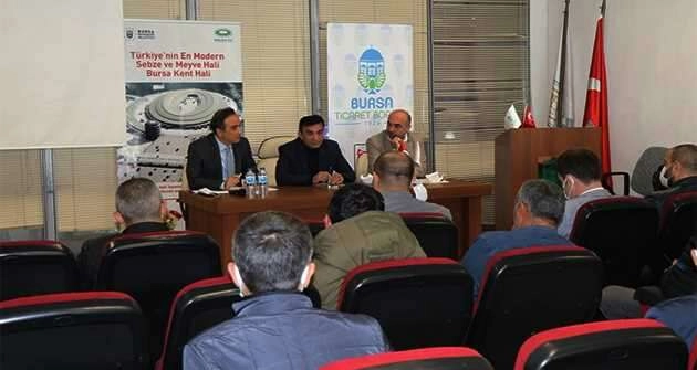 Bursa Ticaret Borsası (Bursa TB), Küçük ve Orta Ölçekli İşletmeleri Geliştirme ve Destekleme İdaresi Başkanlığı (KOSGEB) ilebirlikte “Sebze ve Meyve Soğuk Zincir Finansal Kiralama Destek Programı” bilgilendirme toplantısı düzenledi. Hikmet Şahin Kent Hali’nde düzenlenen toplantıya, Bursa TB Meclis Başkan Yardımcısı İsmail Aslım, Meclis Üyesi Mustafa Aksu, Genel Sekreter Fehmi Yıldız, KOSGEB Bursa Batı Müdürü Erkan Güngör, Bursa Kent Hali Sebze ve Meyve Toptancı İş Adamları Derneği Başkanı Aydın Akyol ile hal esnafı katıldı.