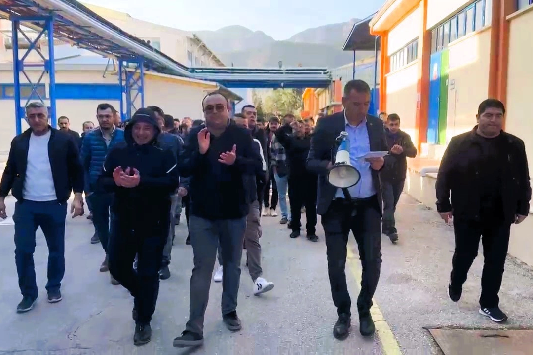 Denizli’de Şişecam’a bağlı cam fabrikasında çalışan yüzlerce işçi, toplu sözleşme görüşmelerinde henüz bir sonucu ulaşılamaması nedeniyle vardiyaya geç girerek 15 dakikalığına iş bıraktı. Geçtiğimiz yılda geçici grevle gündeme gelen fabrikadaki eylemin, toplu sözleşme imzalanıncaya kadar devam edeceği bildirildi.