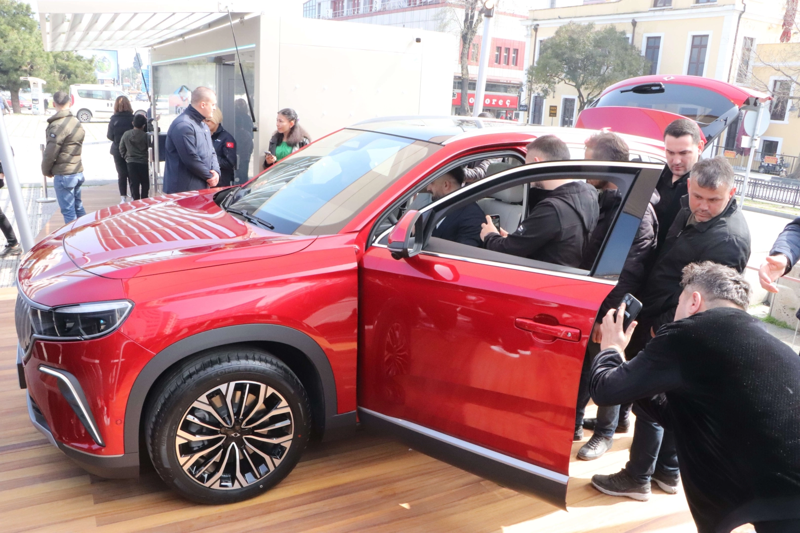 Togg'u incelemek isteyen vatandaşlar uzun kuyruklar oluşturdu. Türkiye'nin Otomobili Girişim Grubu (Togg), TX10 modelini Samsun Cumhuriyet Meydanı'nda sergiledi. Samsun'da görücüye çıkan 523 kilometre menzili olan TX10 modelli araca vatandaşlar yoğun ilgi gösterdi. Anadolu rengiyle sergilenen Togg'a binerek detaylı şekilde inceleme fırsatı bulan vatandaşlar gururlandıklarını ve ileride otomobile sahip olmak istediklerini söylediler. Togg görevlileri ise vatandaşların araba hakkındaki sorularını cevapladı. Vatandaş yorumları Togg'u görmeye gelen vatandaş Mustafa Aslandağ, "İçi umduğumdan daha geniş çıktı. Televizyonda gördüğümden daha büyük geldi. Son derece kaliteli ve premium bir hava verdi. Çok beğendim ve imkanım el verdikçe almayı düşüyorum” dedi. Vatandaş Ali Karaçuha, "Çok güzel buldum. Togg bizim gurur kaynağımızdır. Şu an sevinçten ne diyeceğimi bilemiyorum. Onur duydum. Çok geç kalınmış bir araçtır. Bugünleri de gördük” diye konuştu. Mehmet Şahin isimli bir vatandaş ise "Bizim üretimimiz, bizim yerli otomobilimiz gurur ve zevk duyuyorum. Rabb'im daim etsin, başarılar diliyorum. Gerçekten çok güzel ve çok mutluyum. Bu bizim ve gurur duyuyoruz. Rabb'im İnşallah herkese almak nasip etsin" şeklinde konuştu. Togg 1 ay boyunca Samsun Cumhuriyet Meydanı'nda vatandaşların ziyaretine açık olacak.