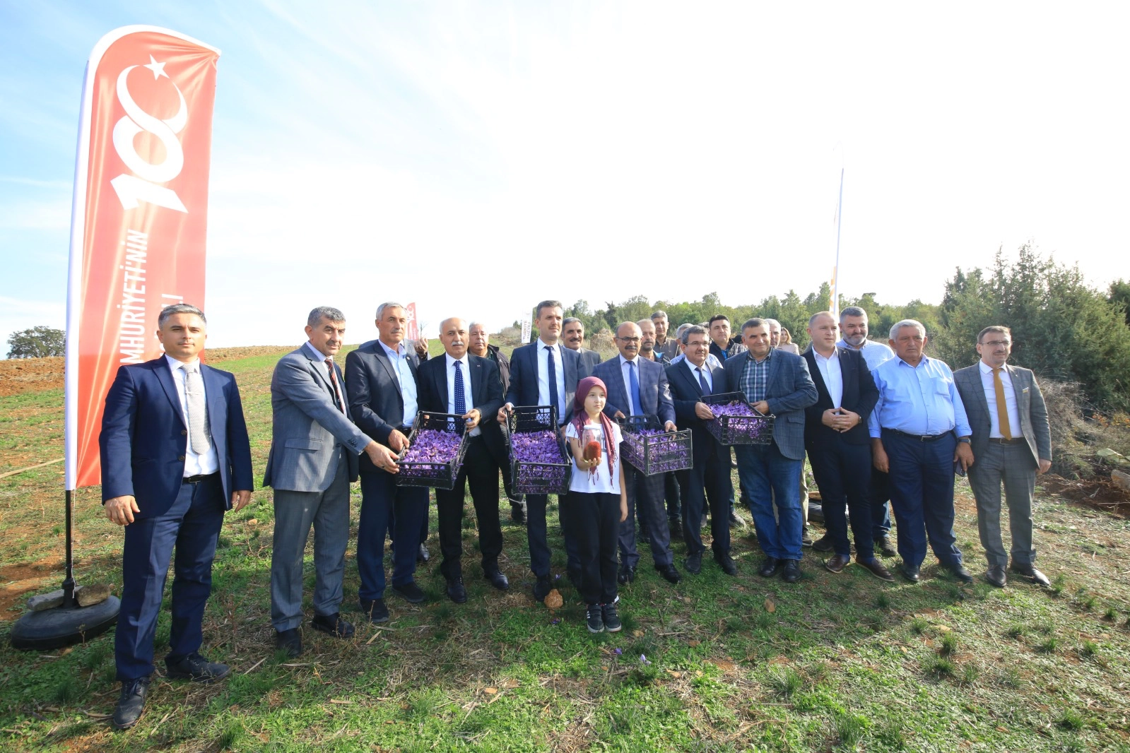 Yenişehir Papatya Mahallesi'nde Tarım ve Orman Bakanlığı tarafından sağlanan yüzde 75 hibe desteği ile hayata geçirilen Safran Üretim Projesi kapsamında yetiştirilen safranlar düzenlenen tarla günü etkinliğiyle hasat edildi.